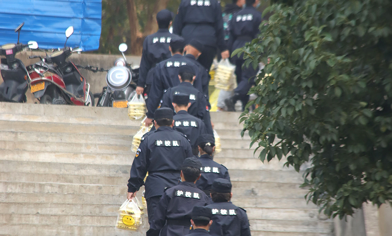 此时深秋已至,天气转凉,配送全校师生的一日三餐成为邵院护校队的又一大工作职责。