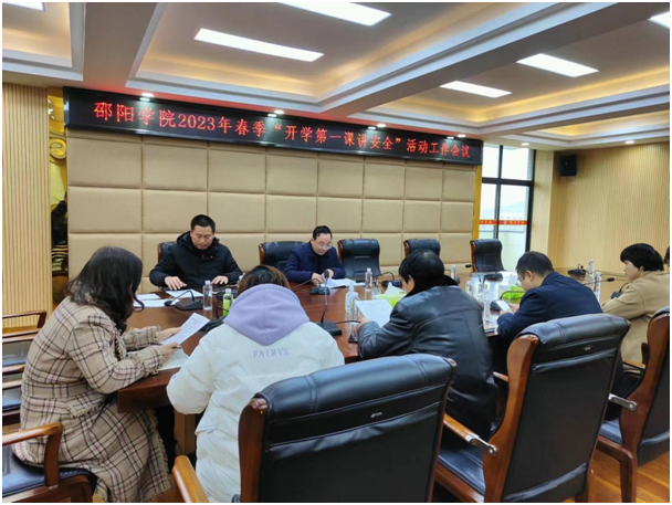 会议对《邵阳学院2023年春季开学第一课讲安全活动实施方案》进行了商定,明确了活动活动内容、时间安排、工作分工以及活动要求。