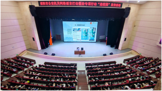 此次活动主题是“依法打击网络谣言,全力营造清朗网络环境”。活动中,公安民警围绕网络谣言法律法规、典型打处案例、网络谣言知识、网络谣言举报渠道等方面开展了主题宣讲,引导师生自觉抵制网上谣言信息,坚决做到“不造谣、不信谣、不传谣”。并强调,要让网络成为传输正能量的工具,主动学习、识破套路,多掌握相关法律知识,用法律武器保护自己的权益。
