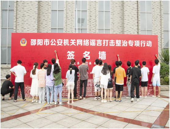 6月15日下午,邵阳市公安局网技支队联合邵阳市委网信办在我校开展网络谣言打击整治专项行动“进校园”线下宣传活动。学校党委委员、副校长蒋剑平,邵阳市公安局党委副书记、常务副局长肖建华出席活动。