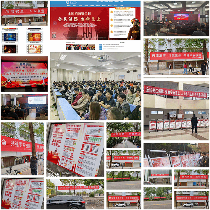 今年11月9日是第33个全国消防日,11月为全国消防宣传月,为深入学习贯彻党的二十届三中全会和习近平总书记关于安全生产和消防安全重要指示批示精神,进一步增强广大我校师生员工的消防安全意识,提升学校整体火灾防控能力,筑牢消防安全“防火墙”,根据湖南省教育厅办公室《关于印发2024年全省教育系统119消防宣传月活动方案的通知》精神和学校2024年度消防安全工作部署,自11月初开始,我校紧扣“全民消防,生命至上”活动主题,组织开展了形式多样的消防安全宣传活动,形成了“人人关注消防、人人参与消防”的浓厚氛围,为建设平安校园打下了坚实的基础。